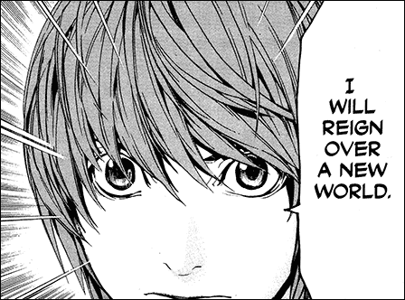 What came to frustrate me about Death Note above all was Light’s lack of vision or ideology. He chooses to become a serial killer of world-historic proportions to build his Utopia but it’s never clear what that new world is supposed to be. Light’s rules are simple: he kills criminals. He accepts the laws as they exist. He never interrogates how those laws came to be, whether they are just, whether things not on the books are crimes in his eyes.